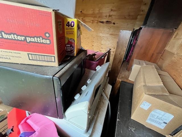 This unit appears to contain…- 2 Bookshelves - Wardrobe - Kids toys & Games - Kids Bed Frame - Window AC - Microwave