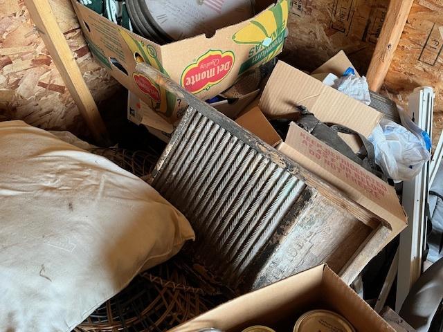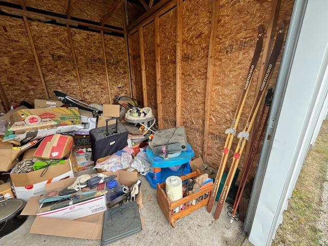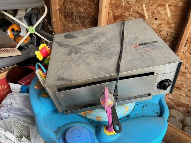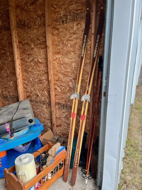 This unit appears to contain…- Tool Boxes and Tools - Pizza Oven -Crock Pot - Toaster Oven - Home Decor - Antique Nordic Skis - Baby Items