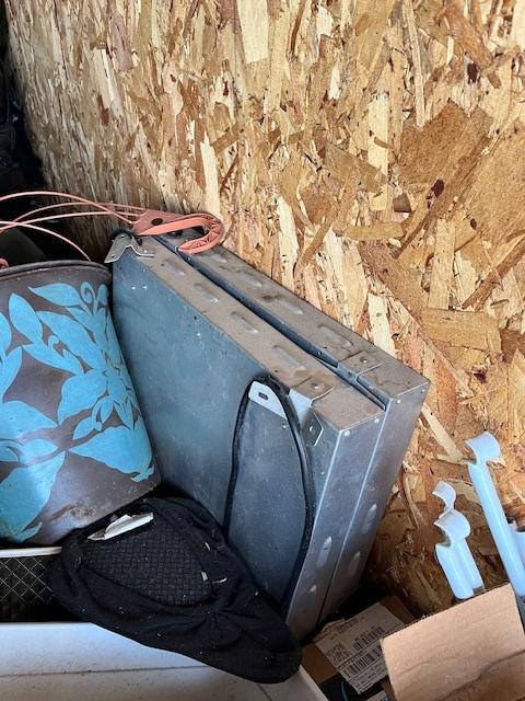 This unit appears to contain…- Large LG Flatscreen TV - Locked Safe - Washing Machine and Dryer - Guitars - Grow Lights - Kitchen Chairs - Lamps