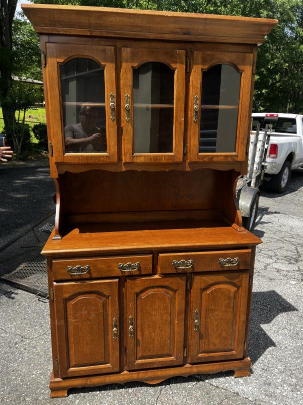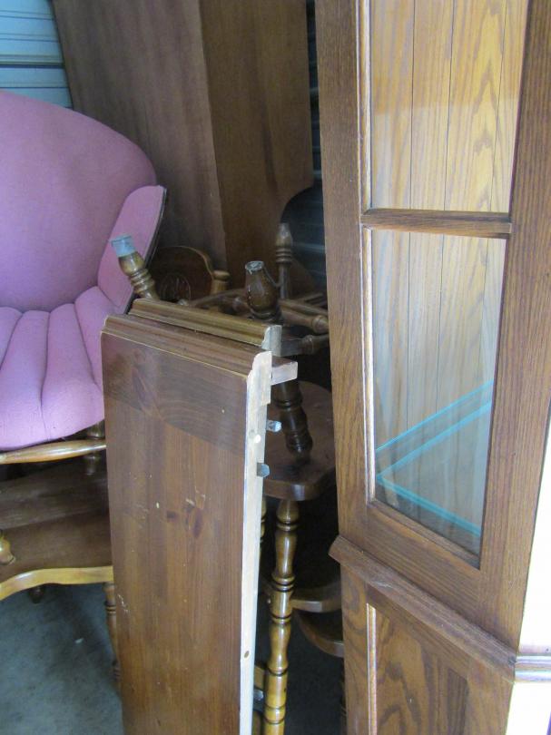 This unit appears to contain…China Hutch, pedestal Table and 6 Chairs, Wing back chair, Corner Hutch