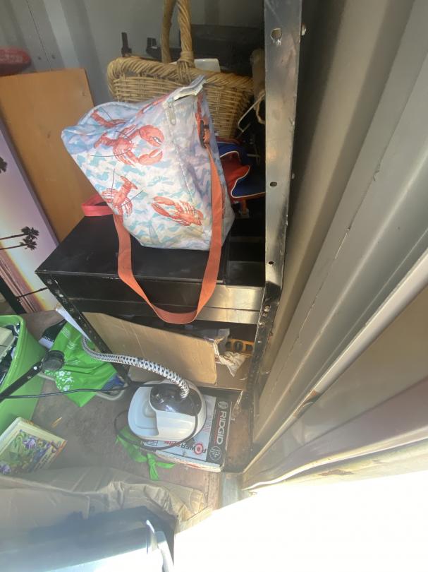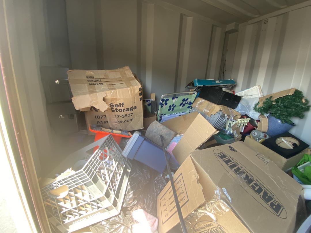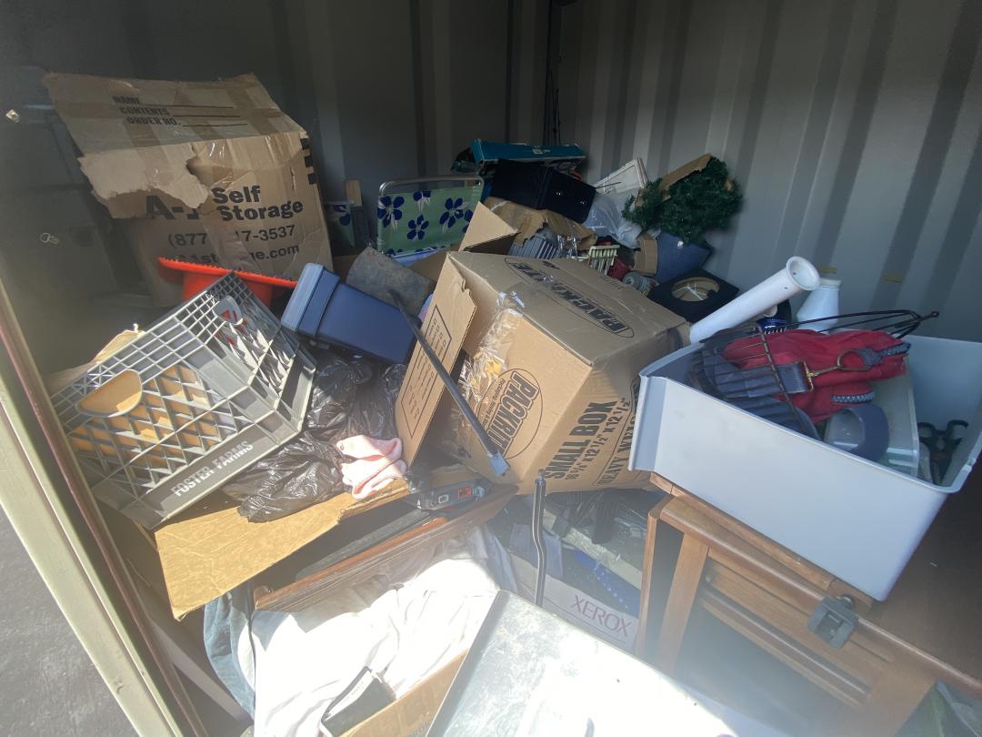 This unit appears to contain…Basket, Canvas Portrait, Boxes, Plastic Bins, Shoes, Furniture, Christmas Tree, Fishing Poles, Beach Chairs, Laptop, Clothes