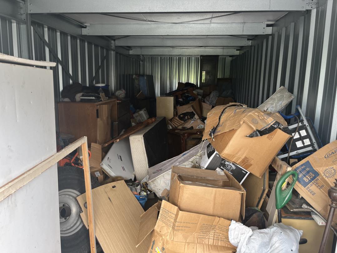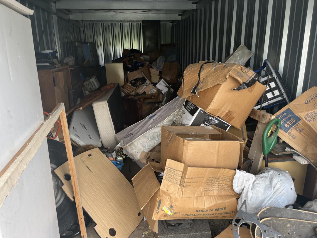 This unit appears to contain…boxes, mattresses, furniture, tires
