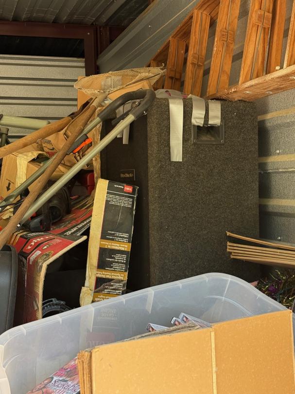 This unit appears to contain…Boxes, Furniture, Bags, Sound Equipment, Drum