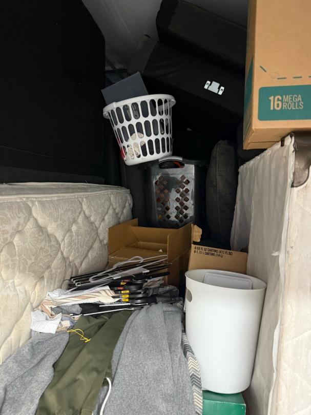 This unit appears to contain…Mattress, Shoes, Books, Boxes, Cleaning Supplies, Laundry Baskets