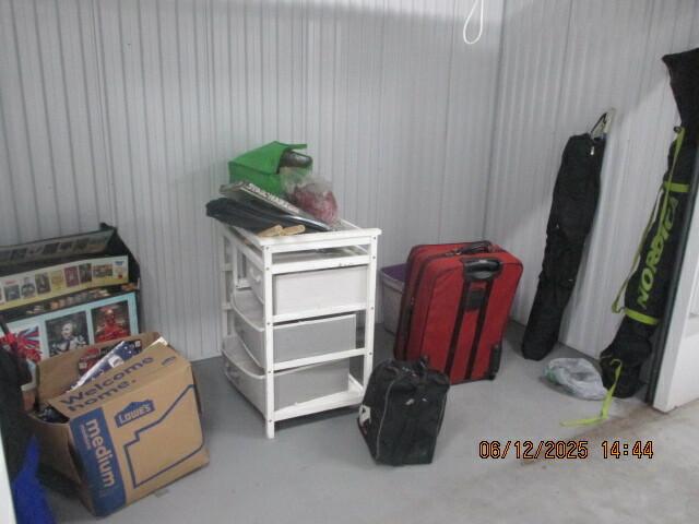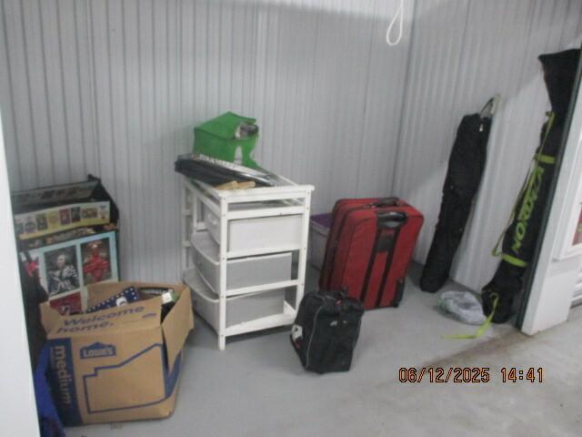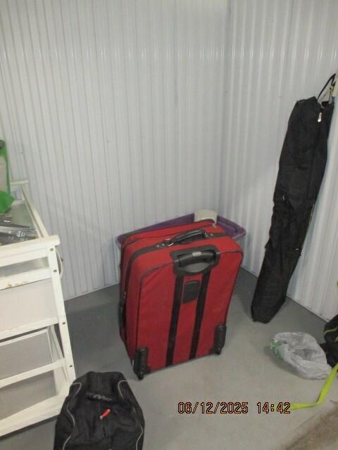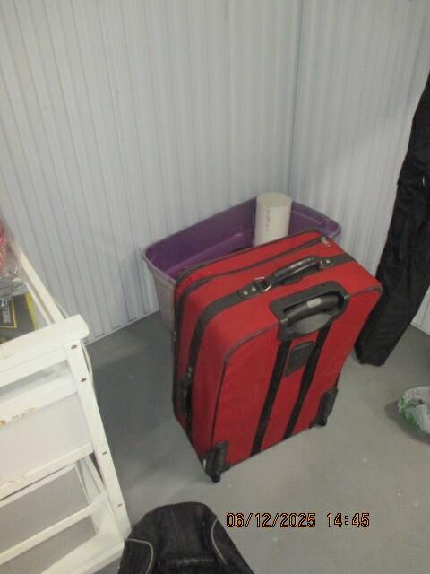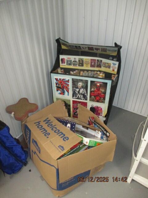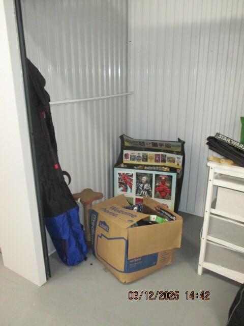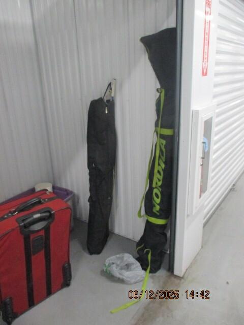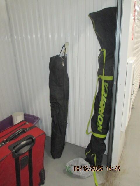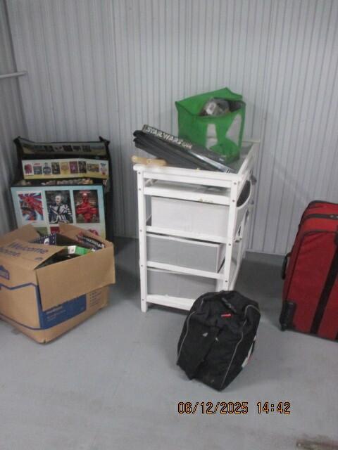 This unit appears to contain…Luggage, Skis, Posters, Changing Table, Golf Clubs, Starwars Game