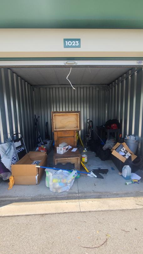 This unit appears to contain…72 hour clean up No dumpster on the lot for use CASH ONLY BRING Picture ID & personal lock $100 deposit returned upon inspection