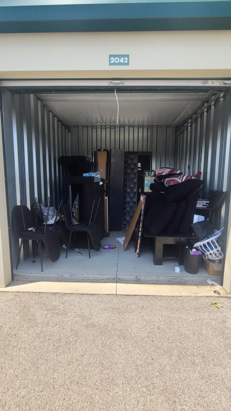 This unit appears to contain…72 hour clean up No dumpster on the lot for use CASH ONLY BRING Picture ID & personal lock $100 deposit returned upon inspection