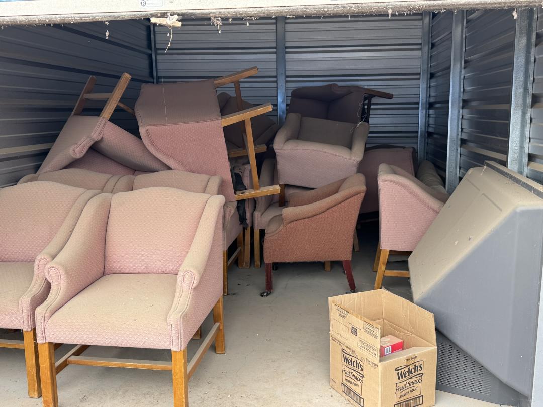 This unit appears to contain…office chairs, big TV, box, miscellaneous.