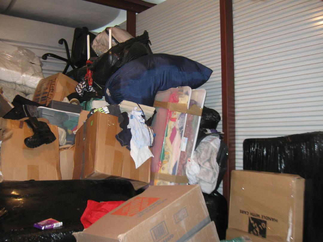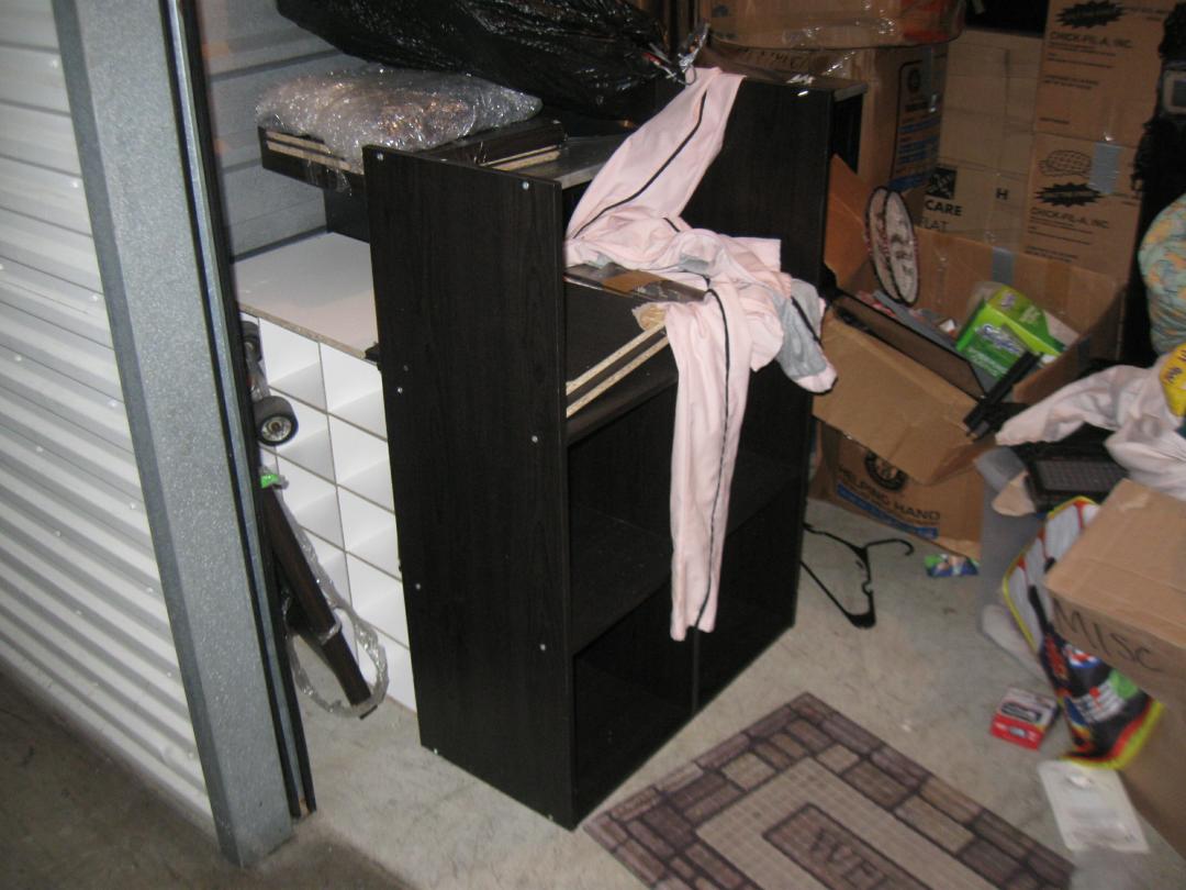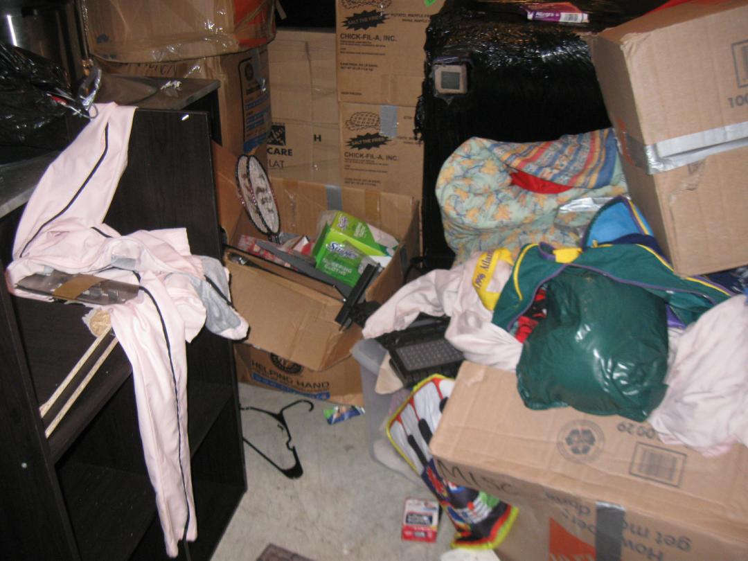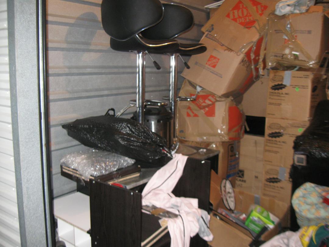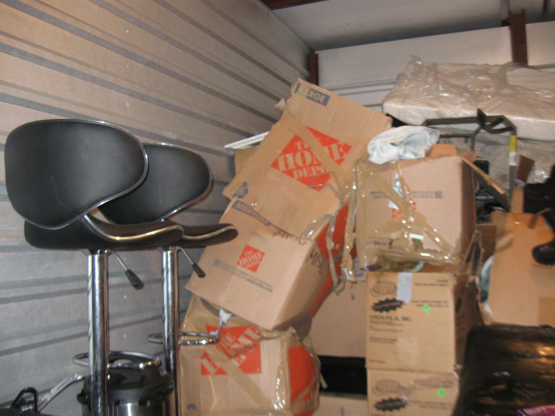 This unit appears to contain…Boxes, Luggage, stools(2), shoes, furniture, totes, skateboards, vacuum