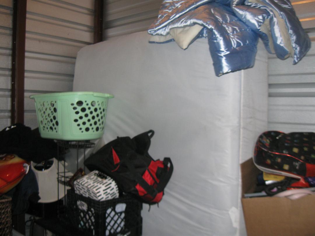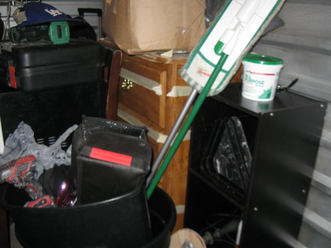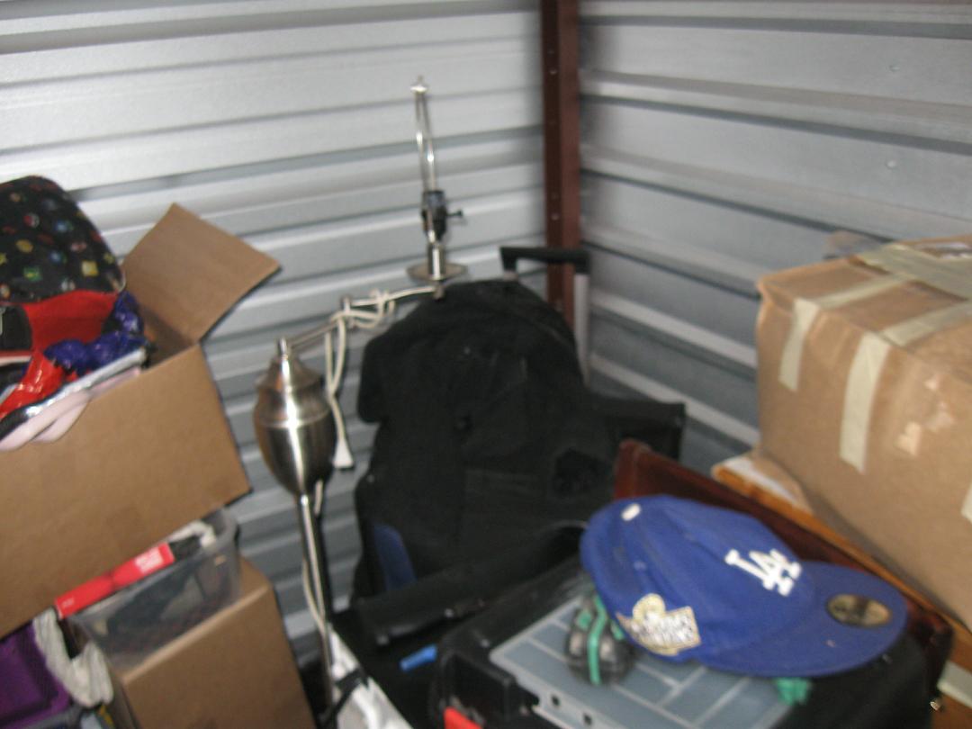 This unit appears to contain…Trash Can, Shelves, Chest of Drawers, Lamp, Microwave, Toolbox, tools, step ladder, totes, mattress, luggage, lamp, furniture, backpack, Pruners