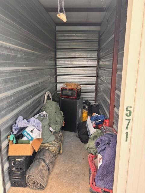 This unit appears to contain…Various Army bags and duffle bags. Microwave, mini fridge, computer and more!