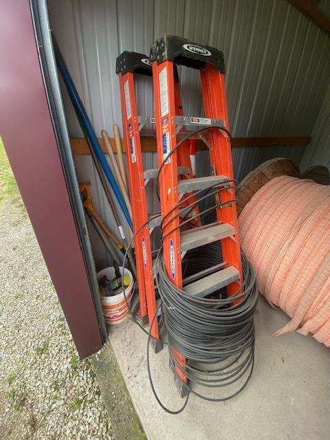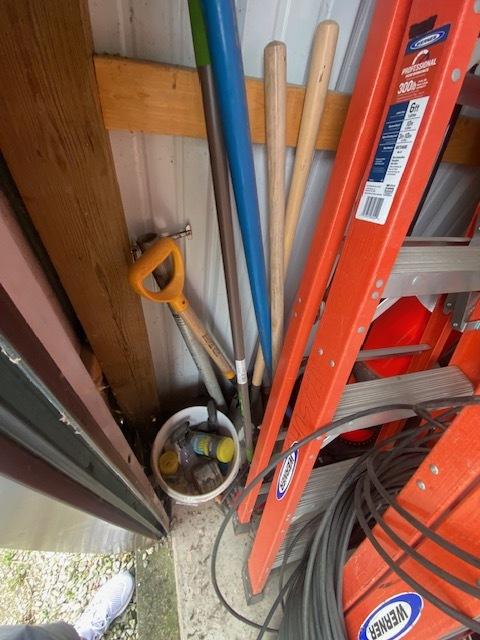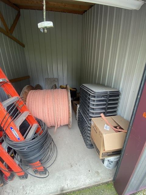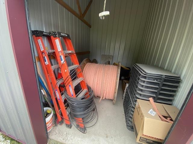 This unit appears to contain…Looks to be an electrician's unit with tools, ladders and other items work related