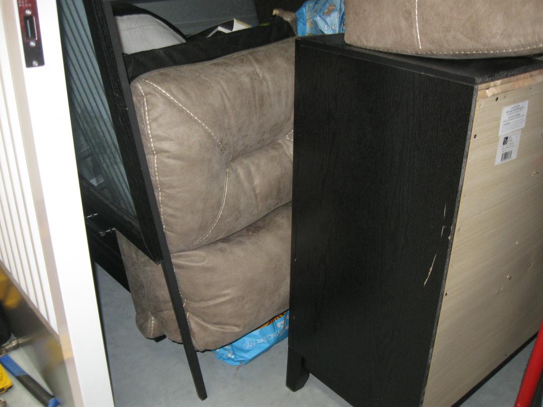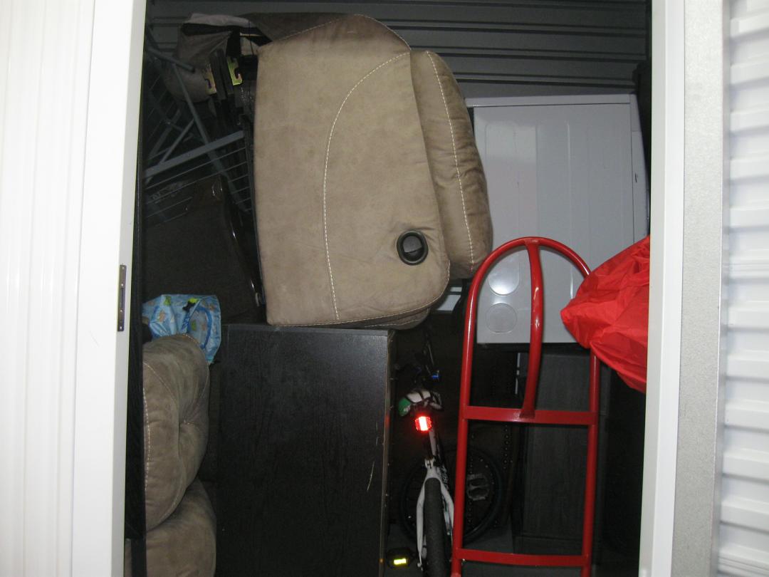 This unit appears to contain…Washer/ Dryer, Sofa, Mattress, Headboard, Dresser, 1 Dresser Mirror, Coffee Maker, Bed Frame, Furniture, Bike, Dolly