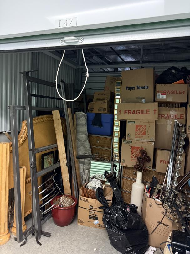 This unit appears to contain…furniture, household items, boxes