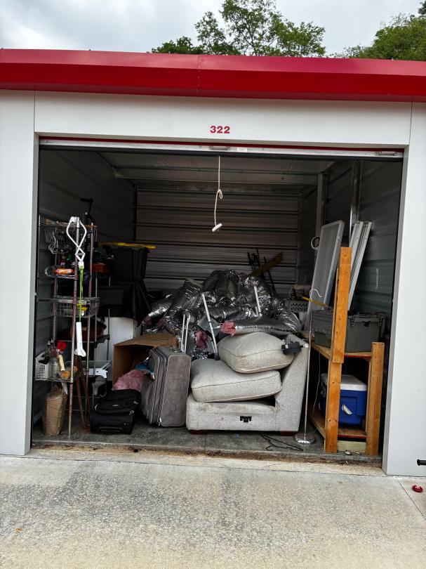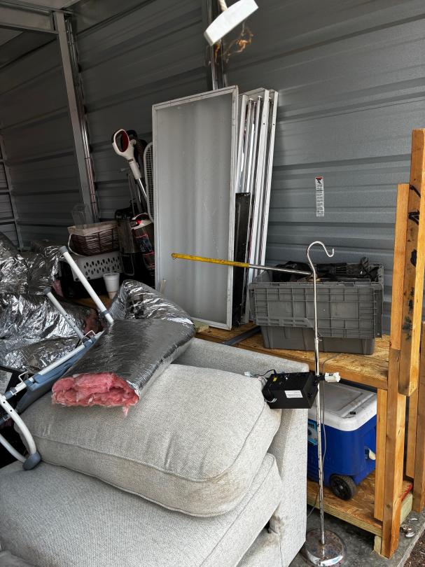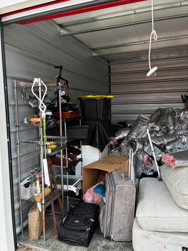 This unit appears to contain…Tools, Chairs, Couch, Vacuum, Stroller, Luggage, Fireplace, Blankets, Boxes