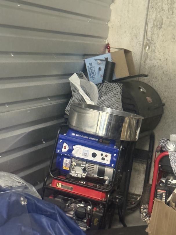 This unit appears to contain…Bounce House, Smoker, Fan, Totes, 5 Boxes, Generator