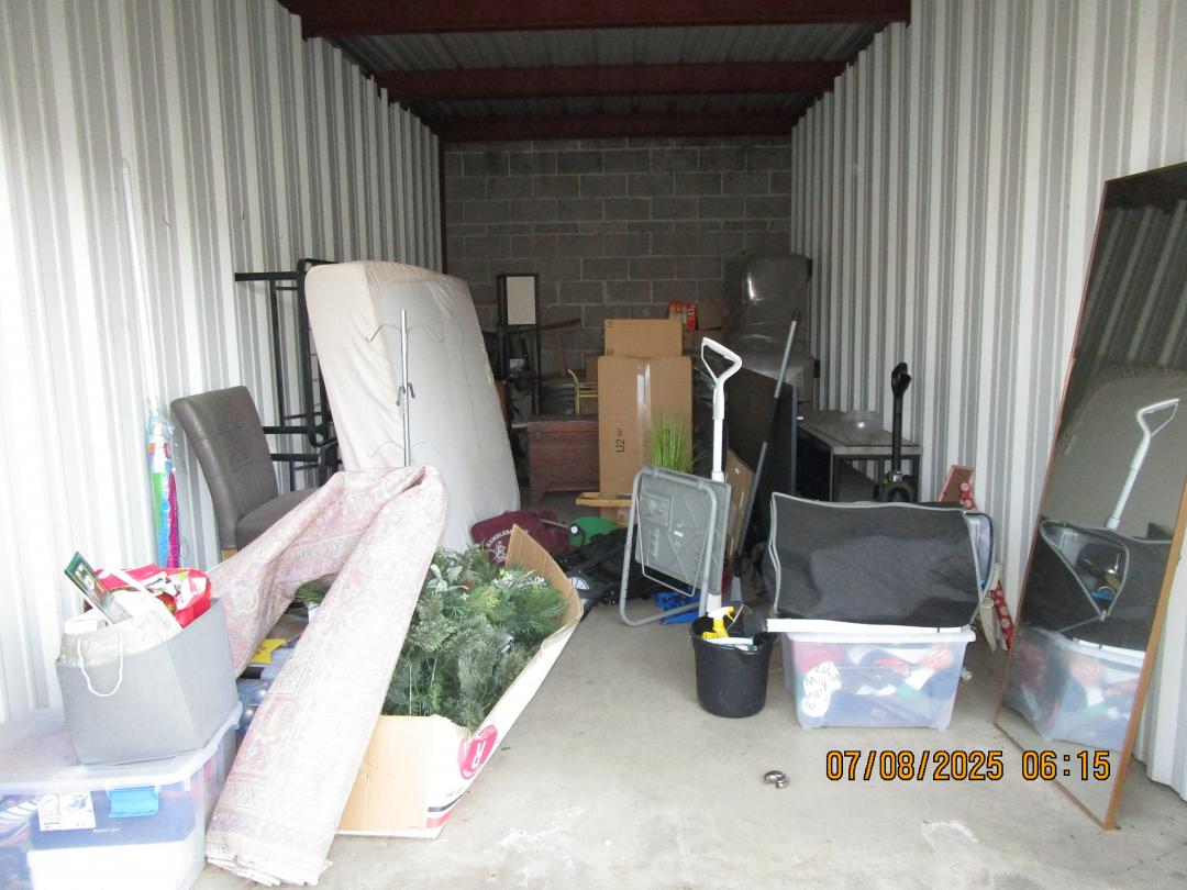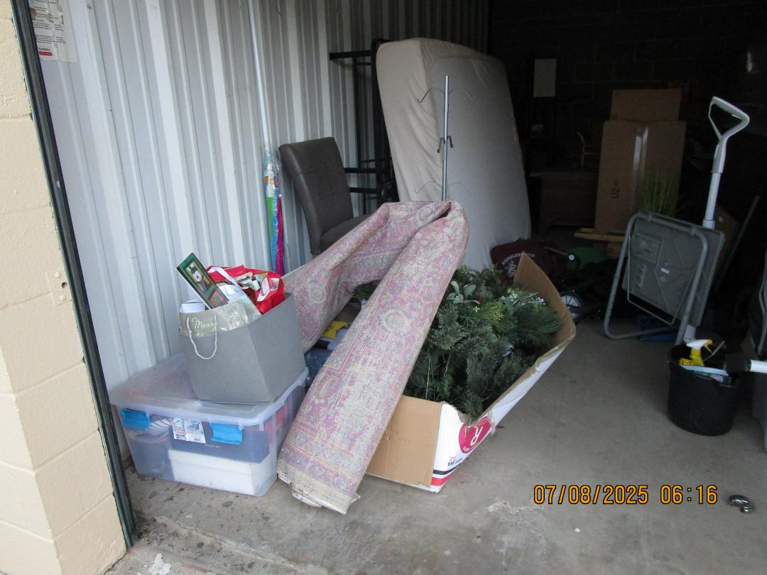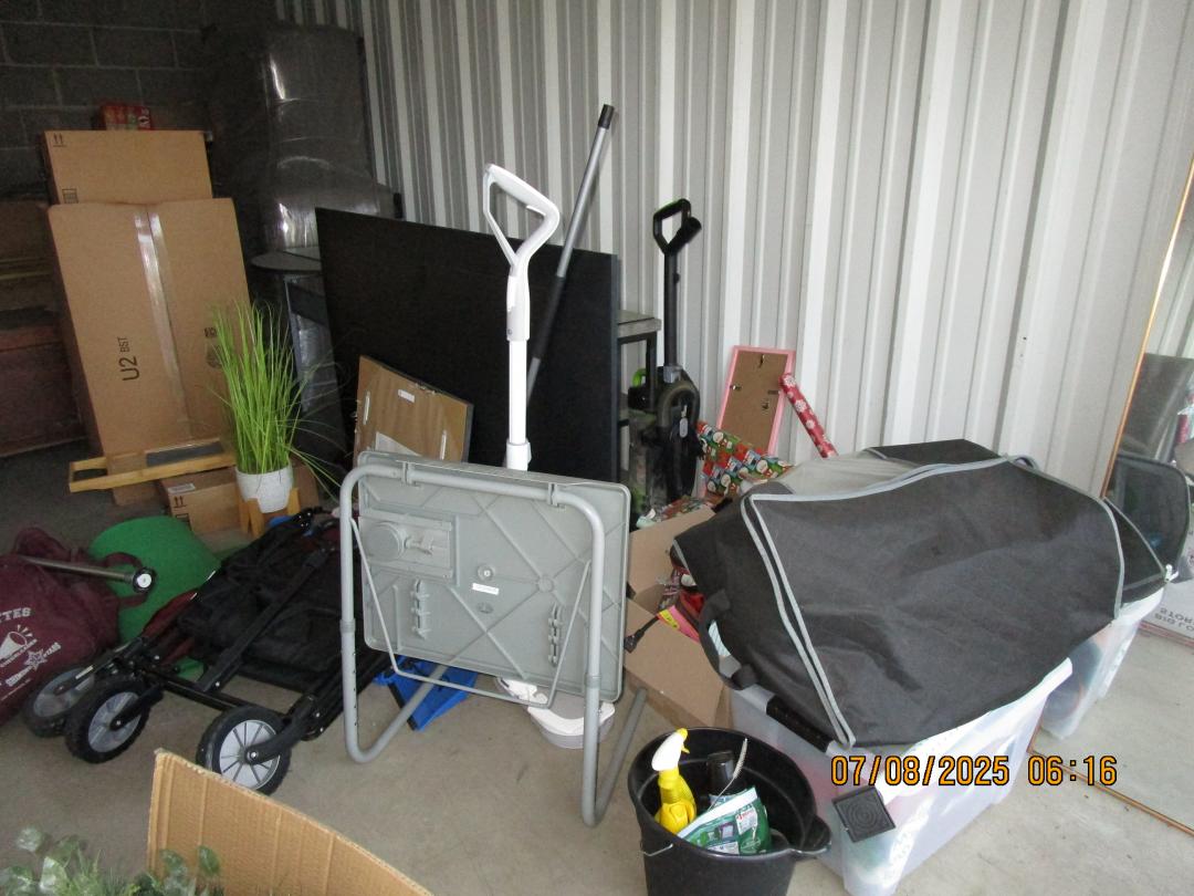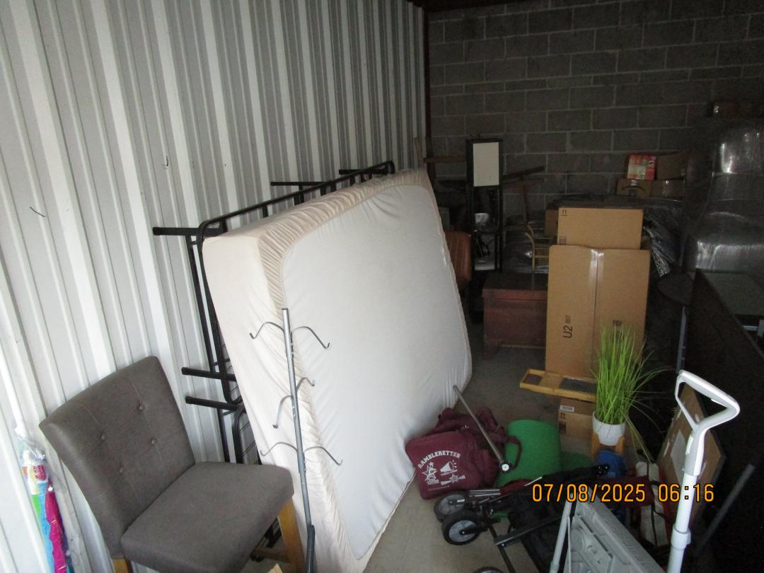 This unit appears to contain…chairs, tvs, boxes, totes, mattress