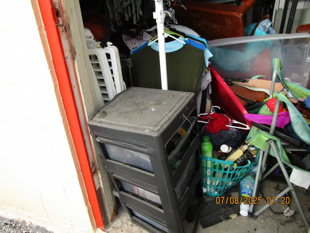 This unit appears to contain…washer, dryer, desk, clothes, dresser, totes
