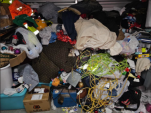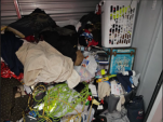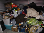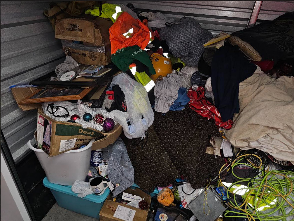 This unit appears to contain…CLOTHES, EXTENSION CORDS, HOUSEHOLD GOODS, CHRISTMAS DECORATIONS, BINS AND BOXES, MOVIES, WALL ART, MISCELLANEOUS AND PERSONAL ITEMS