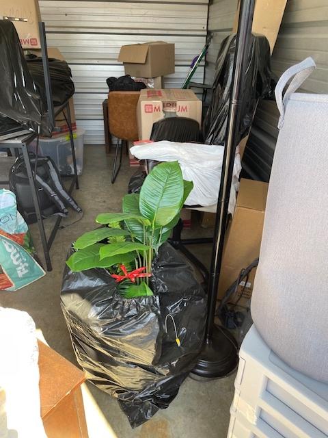 This unit appears to contain…This 10x15 traditional unit appears to contain: Wooden Cabinet, 2-small yard fence, 10x10 canopy, lamp, sports folding chair, inflatable sofa, chest, tv trays, rubber hammer, fake plant, desk chair,, desk, folding lounge chair, end table, 2-back packs, plastic storage with drawers, bed linens, rolling cart, table lamp, extension cord, chair, misc totes, misc boxes, misc bags, small shelf and many hidden treasures.