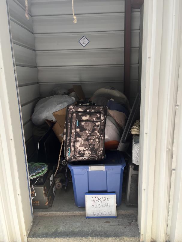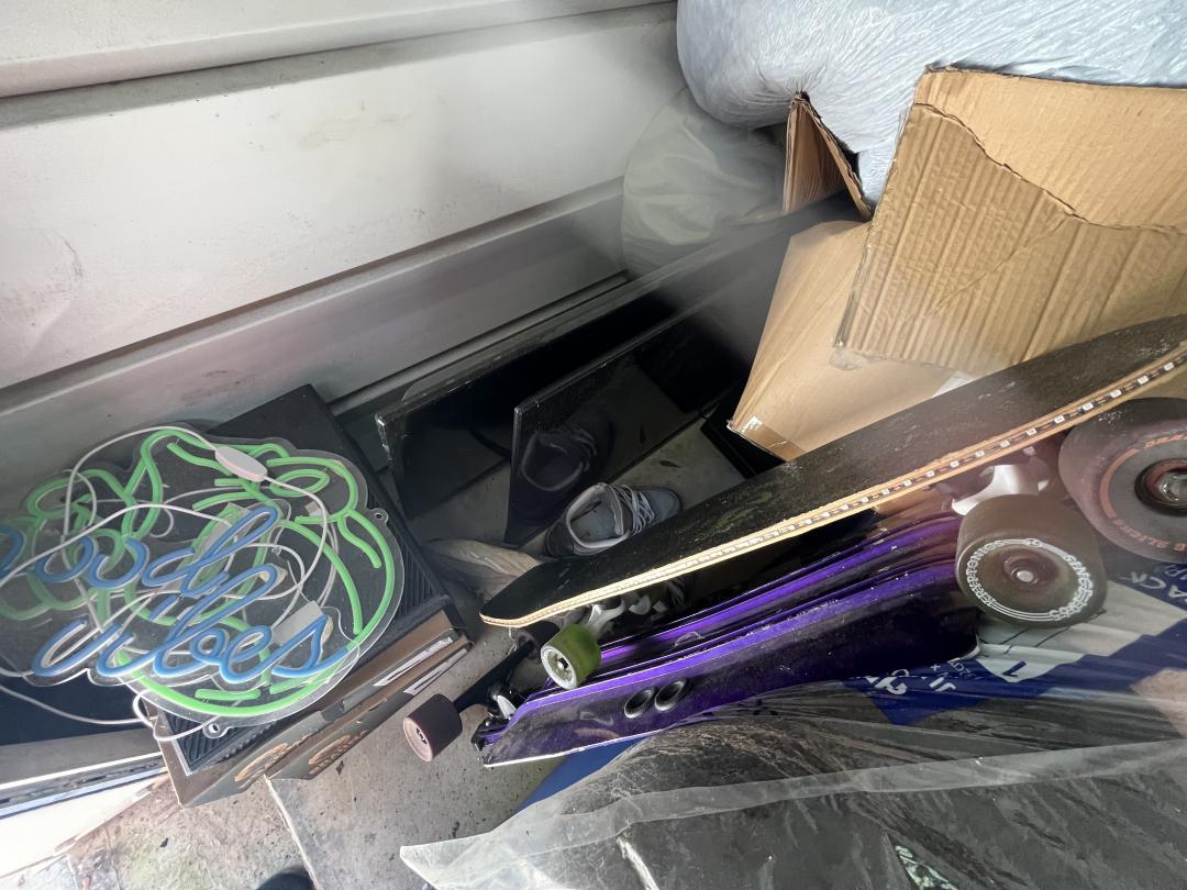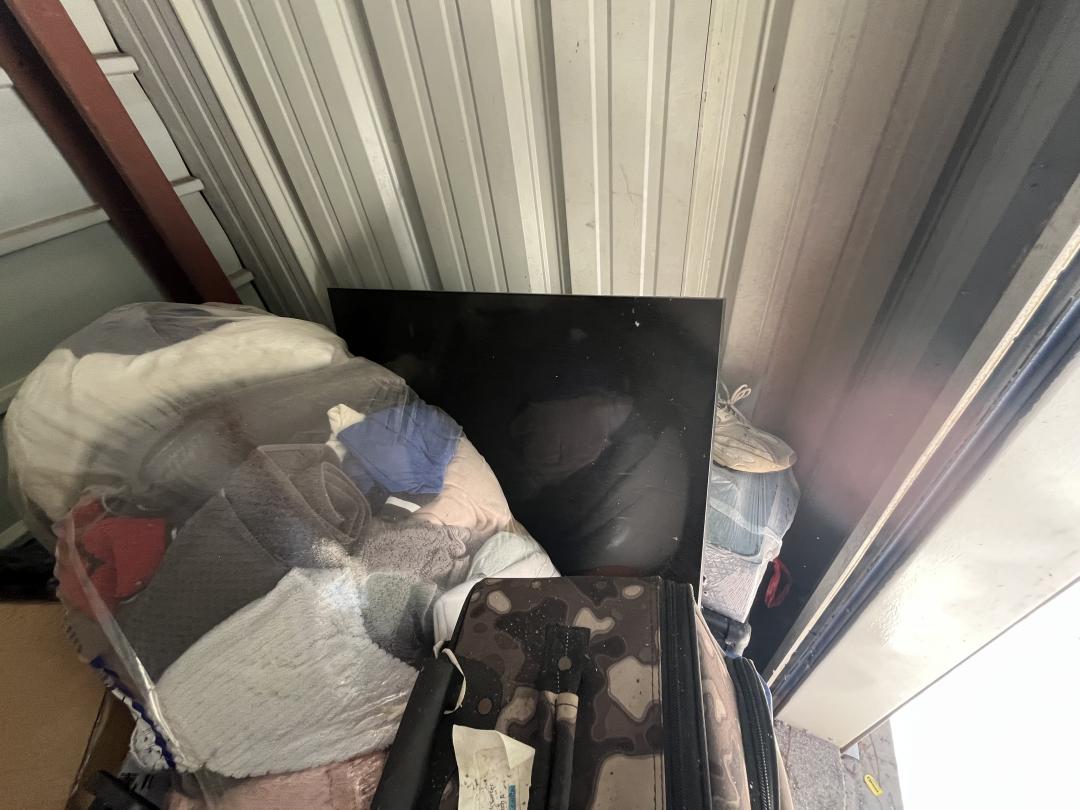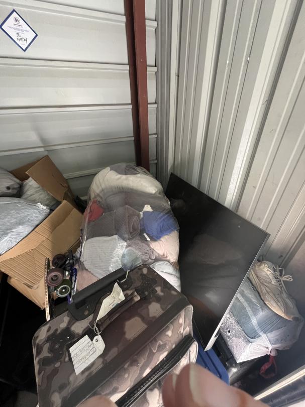 This unit appears to contain…Suitcase, TVs, Neon Signs, Bucket, Skateboards, Boxes, Bags, Clothes, Shoes