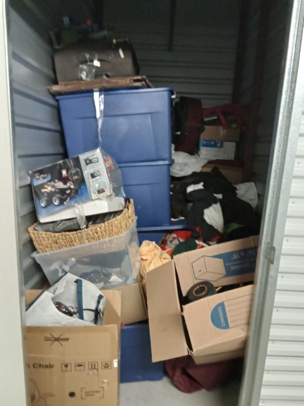 This unit appears to contain…BOXES, TOTES, BASKETS, CLOTHING, LUGGAGE, CLOTHING, BAGS, TOYS