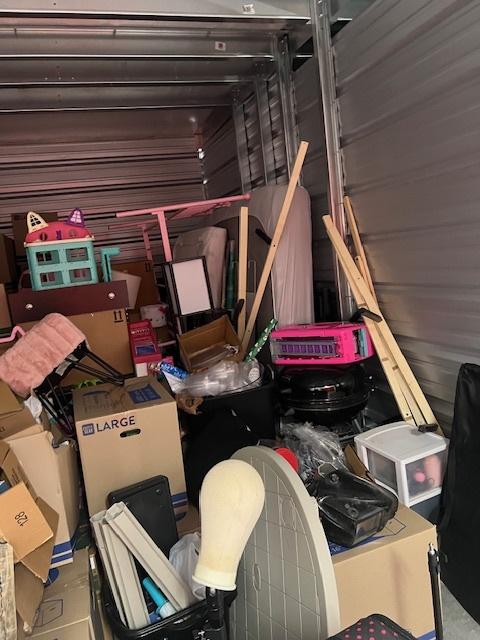 This unit appears to contain…Boxes, Totes, Bed Frame, Dresser