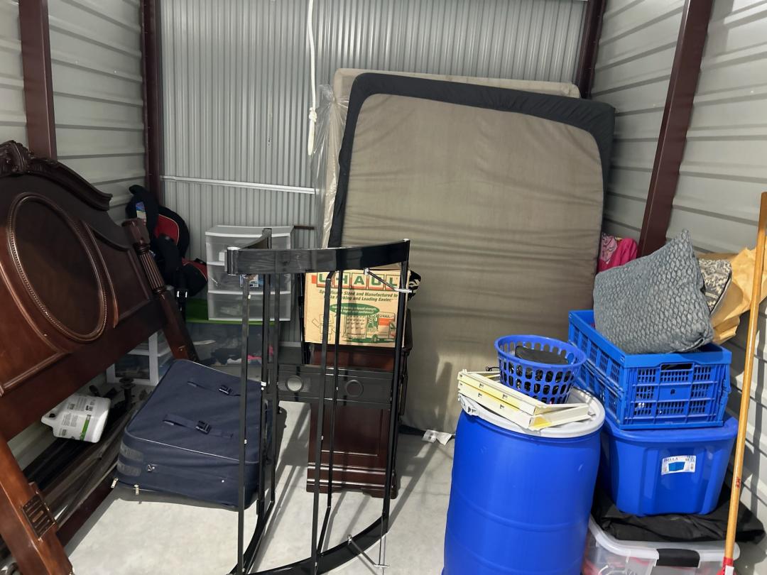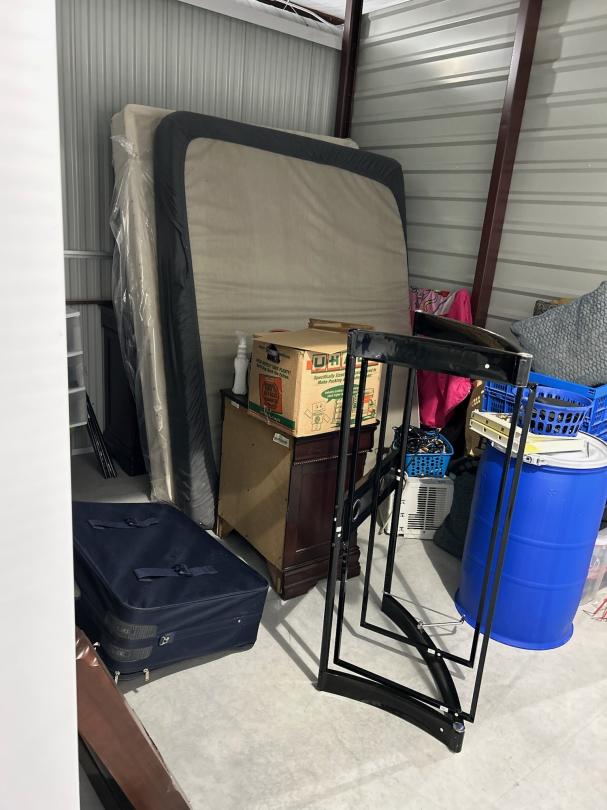 This unit appears to contain…Unit B251 appears to contain: Bedroom furniture, air conditioner, totes, boxes, suitcase