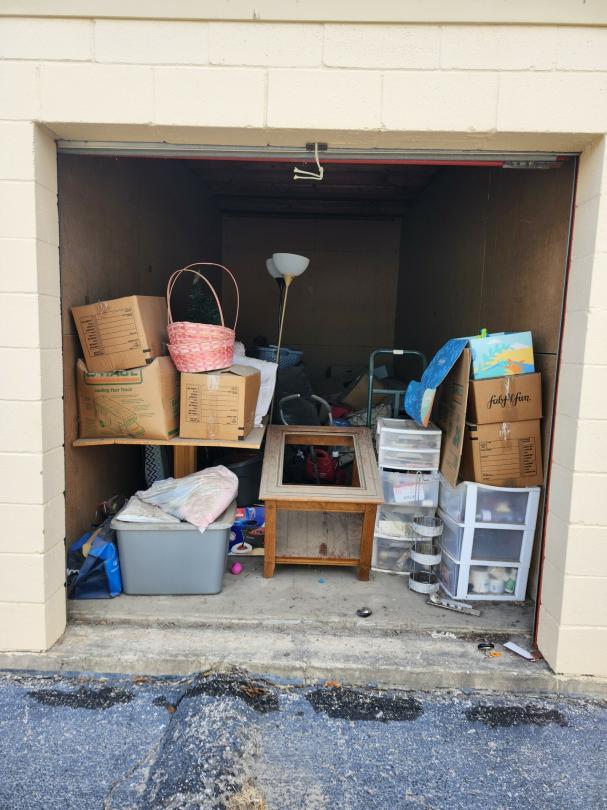 This unit appears to contain…WICKER CHAIR, PET CARRIER, WALL ART, CLOTHING,