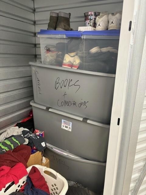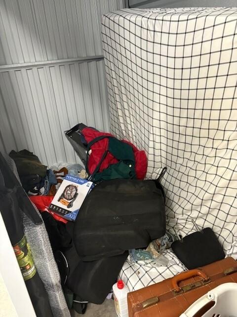 This unit appears to contain…Shoes, clothing, suitcase, mattresses