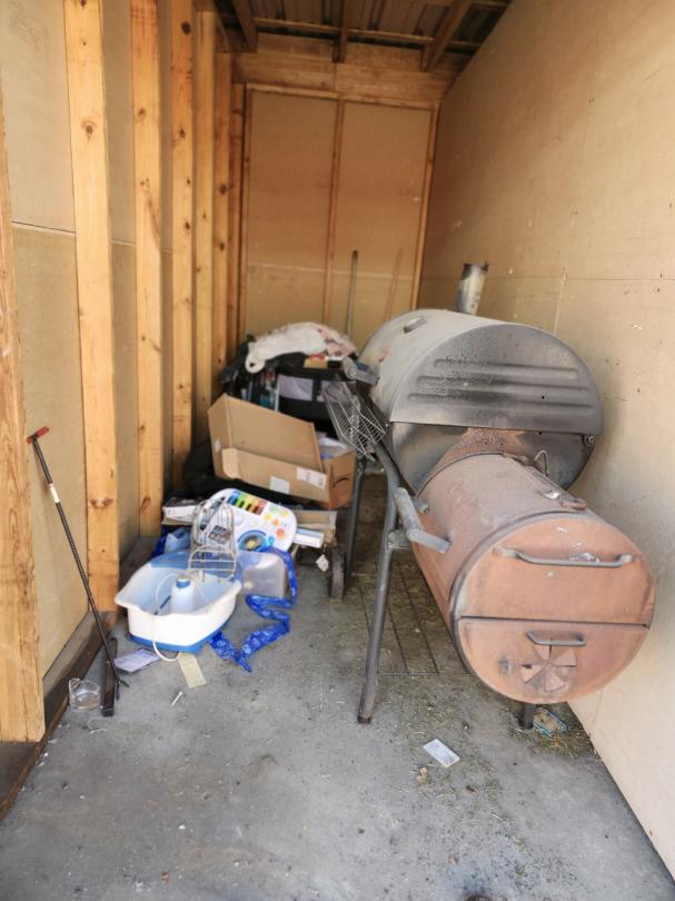 This unit appears to contain…BARBECUE PIT, BOXES, FOOT SPA, TOTES, BABY TOYS
