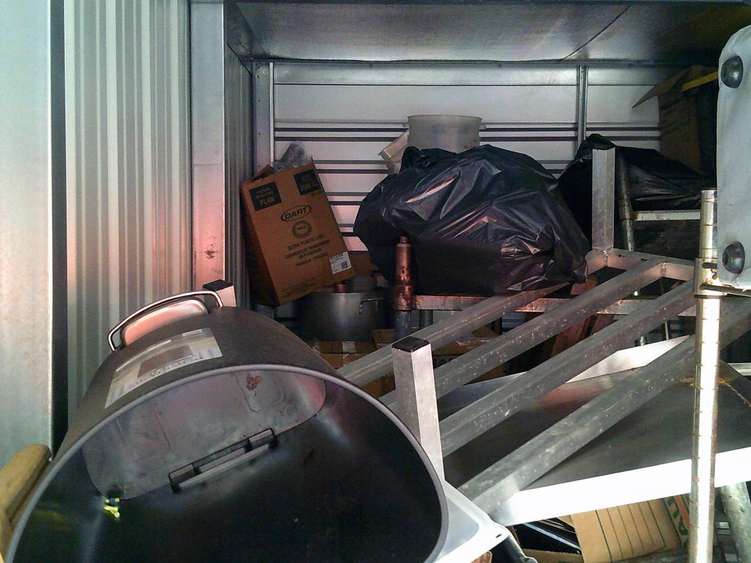 This unit appears to contain…READ ALL AUCTION RULES BEFORE BIDDING!!! Unit appears to contain: tables, sink, coffee maker, kitchen racks, TVs, fridge, folding chairs, wall art, kitchen utensils, highchair, printer, microwave, boxes, refrigerator deli prep stations, totes