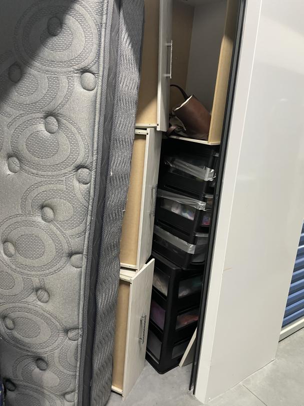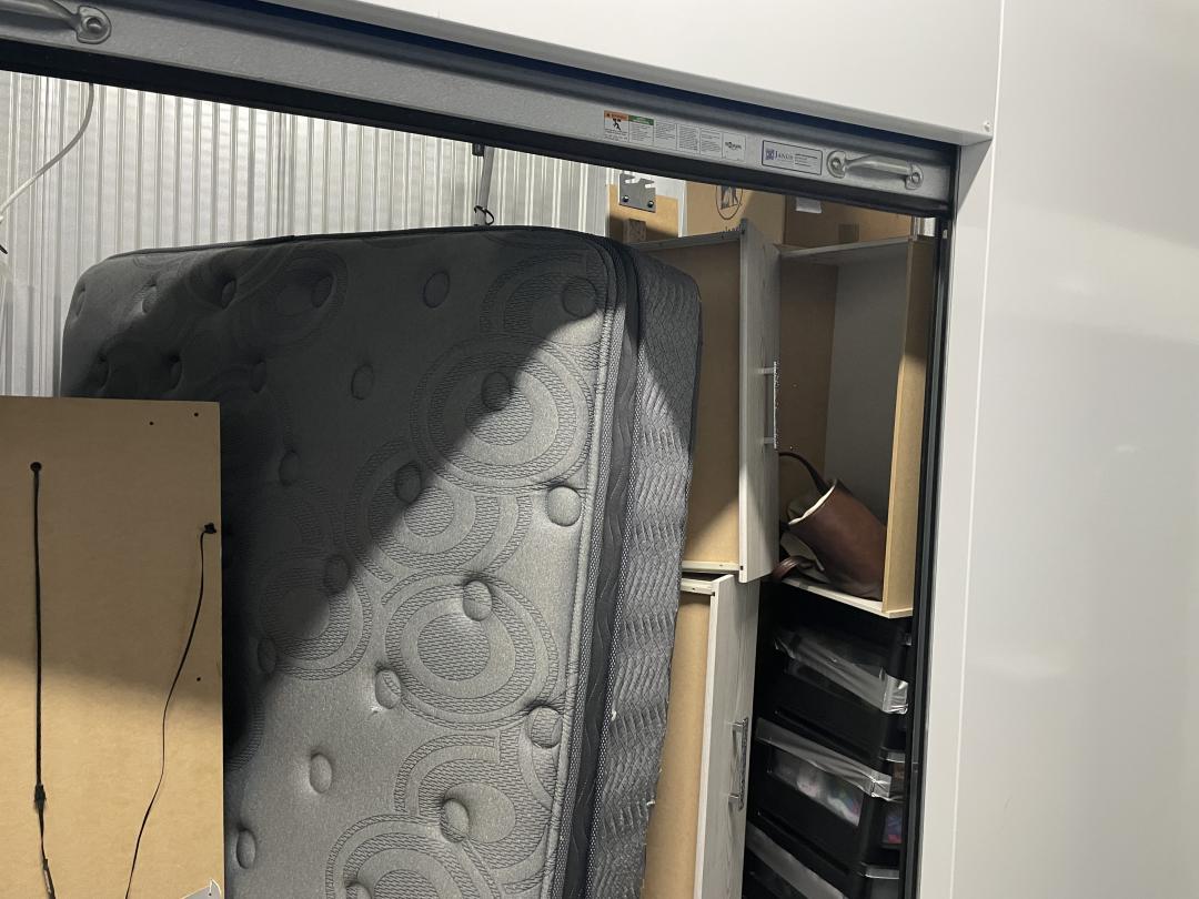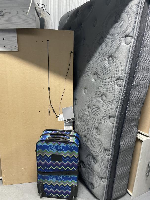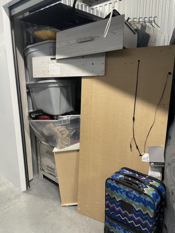 This unit appears to contain…5x10 unit that appears to contain totes, suitcases, furniture, mattress, tv