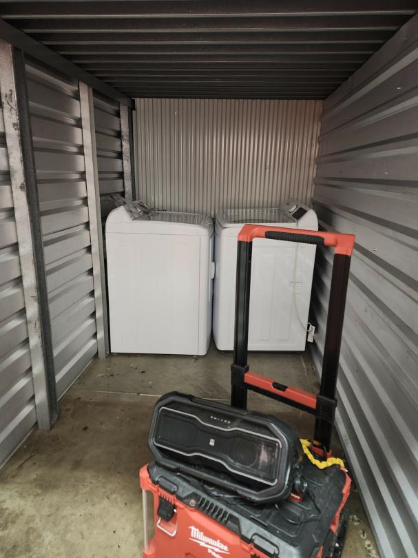 This unit appears to contain…WASHER AND DRYER, ROLLING TOOL CART, BLUE TOOTH SPEAKER