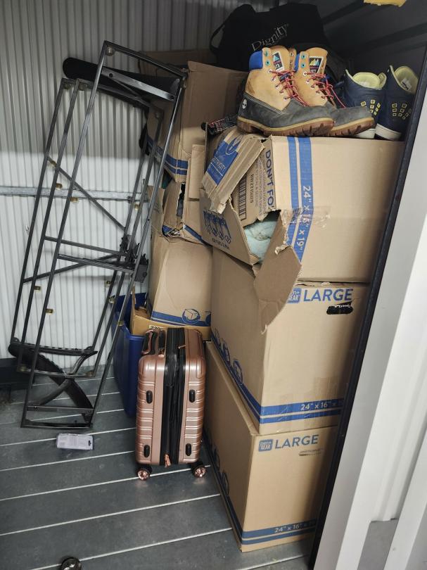 This unit appears to contain…BOXES, SHELVES, LUGGAGE, TOTES