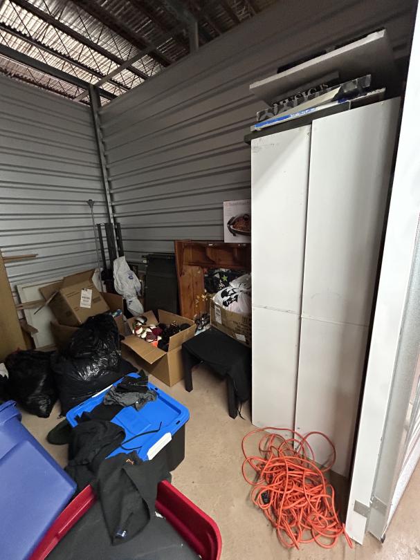 This unit appears to contain…READ ALL AUCTION RULES BEFORE BIDDING!!! Unit appears to contain: dresser, cabinet, table, pop up canopy, boxes, bags, totes