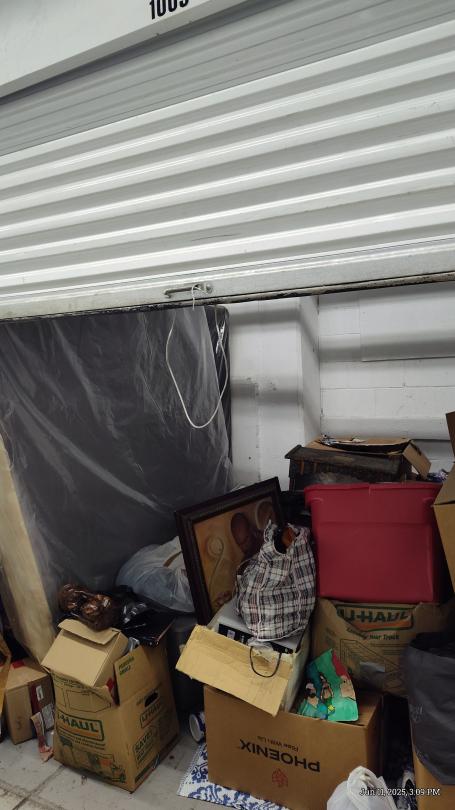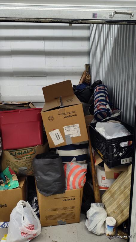 This unit appears to contain…Mattress, bins, Boxes, bags