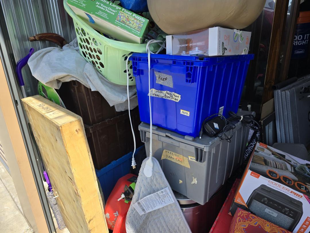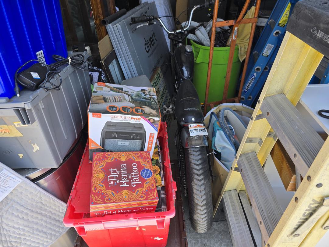 This unit appears to contain…Household Items, Bike, Totes Tools, and lots of misc items.