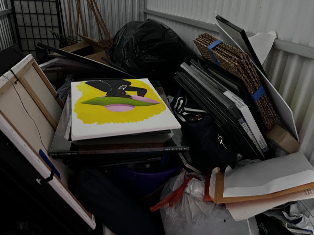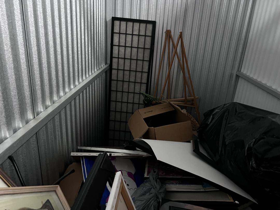 This unit appears to contain…Folding Table, Boxes, Wall Art, Boxes, Art Supplies