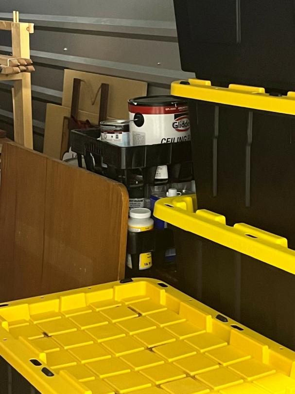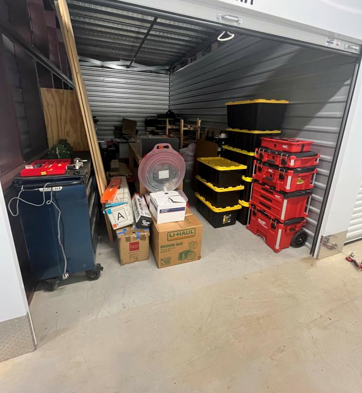 This unit appears to contain…Lumber, Woodwork equipment, Toolboxes, Totes, Vacuum, Table Saws, Decor, Bags, Insulation, Paints, Solvents
