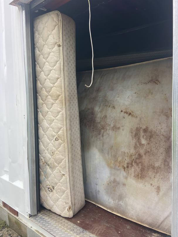 48 hours clean up, no dumpster on the premises. Convenience center nearby. 100.00 clean up deposit before accessing the unit.