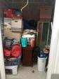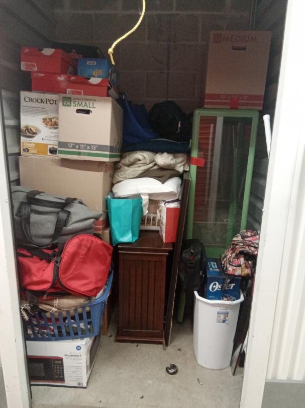 This unit appears to contain…BOXES, PLASTIC TRASH CAN, LAUNDRY BASKET, BAGS, GLASS CABINET, FURNITURE