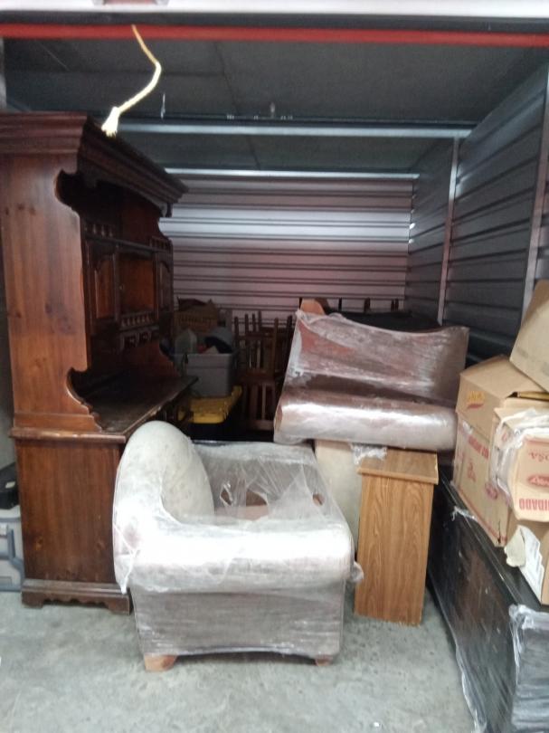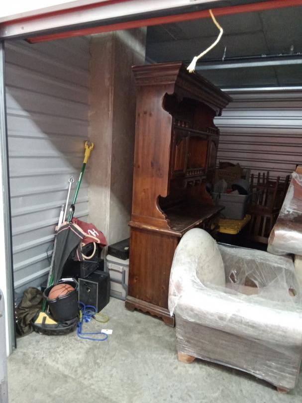 This unit appears to contain…BOXES, CHAIRS, FURNTIURE, ICE CHEST, HUTCH, TOTES, DINING TABLE AND CHAIRS