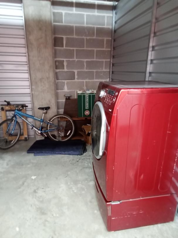 This unit appears to contain…SAMSUNG FRONT LOADER DRYER WITH STEAM OPTION, BIKE, DOLLY, BOXES, DECONSTRUCTED POOL TABLE