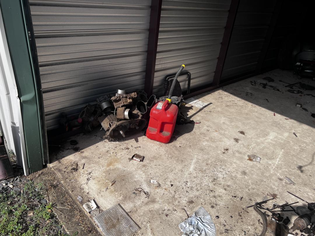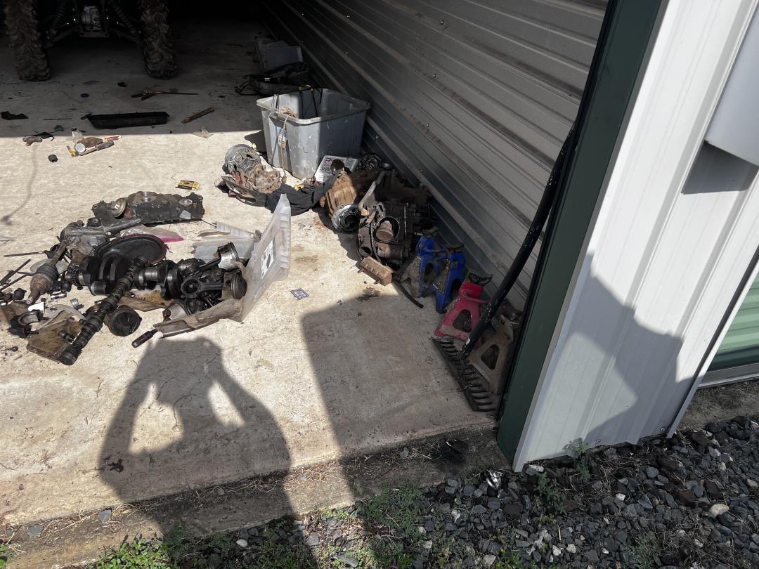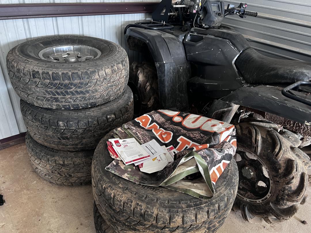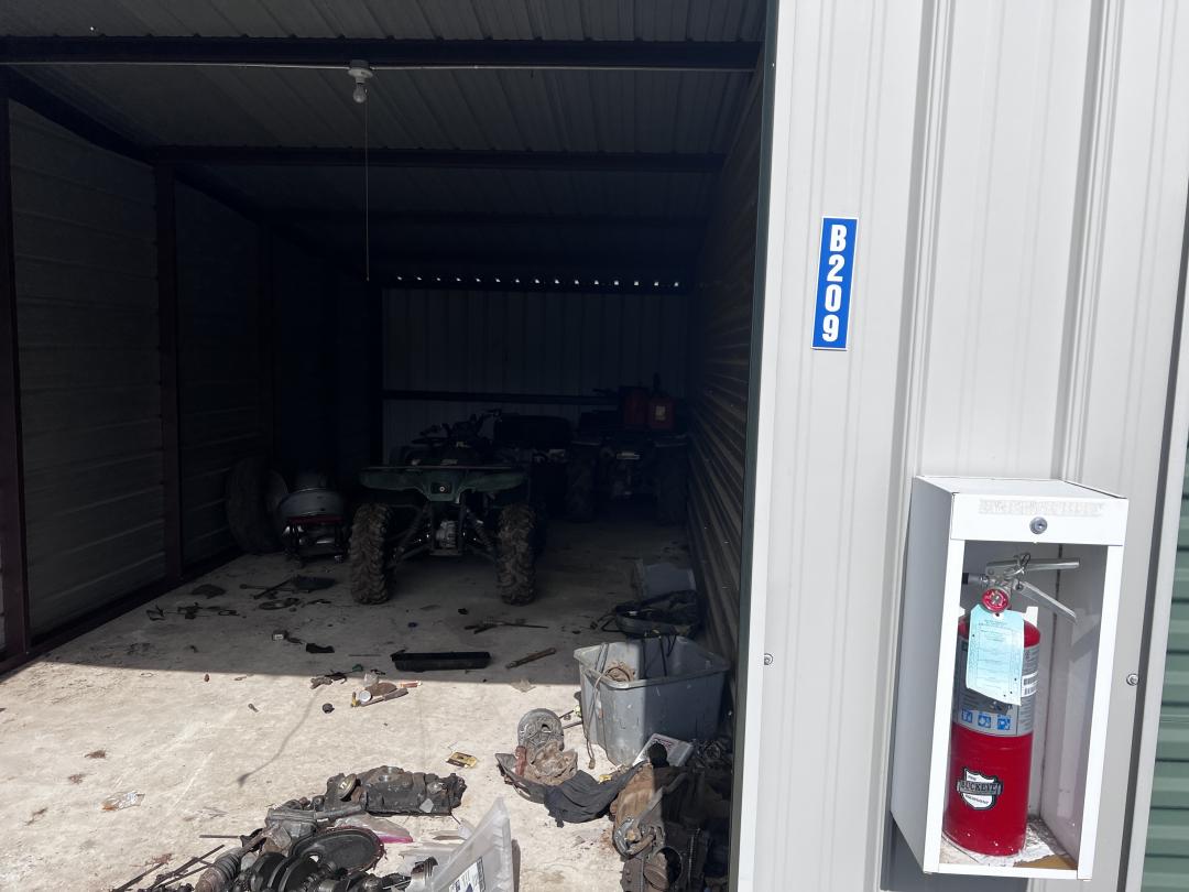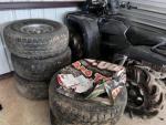 This unit appears to contain…4-wheelers (ATV), engine parts, tires, car stands