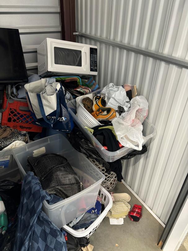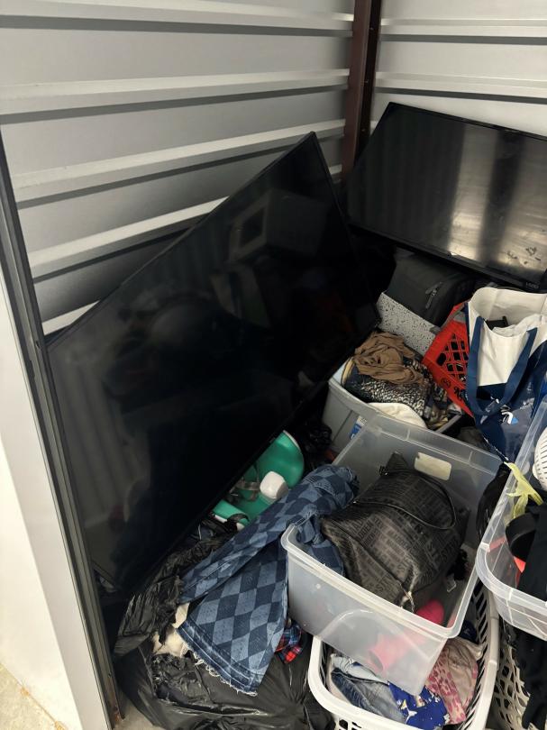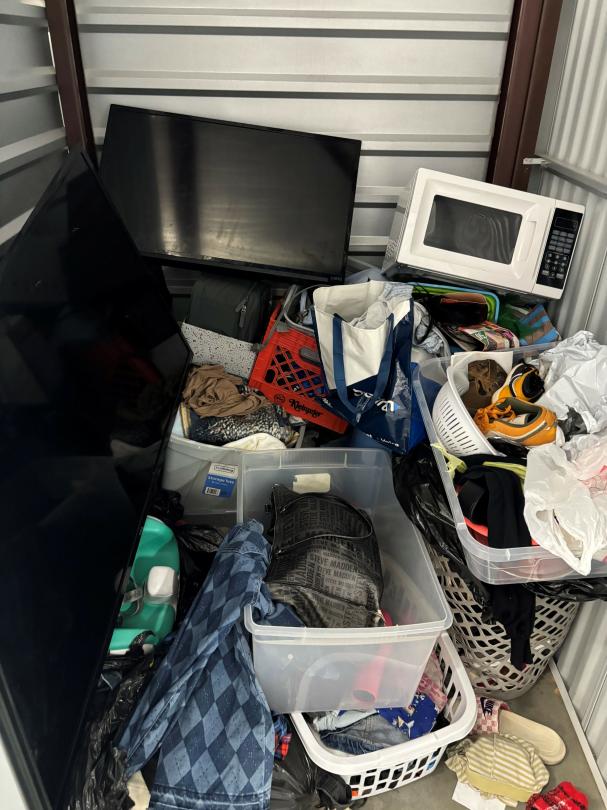 This unit appears to contain…This unit appears to contain Televisions, Microwave, Boxes, Clothes, Shoes, Baby Equipment, Crates