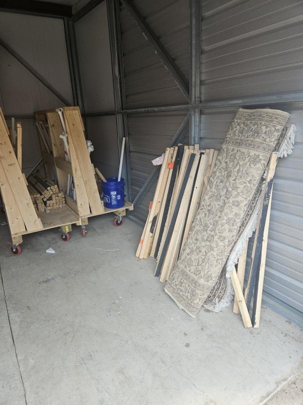 This unit appears to contain…Wood, paneling , rug, misc. items