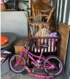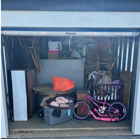 This unit appears to contain…2 scooters 1 bicycle Dinette & 4 chairs Dresser Crib Mattress & Foundation Few boxes of unknown contents 1 plastic tub of unknown contents
