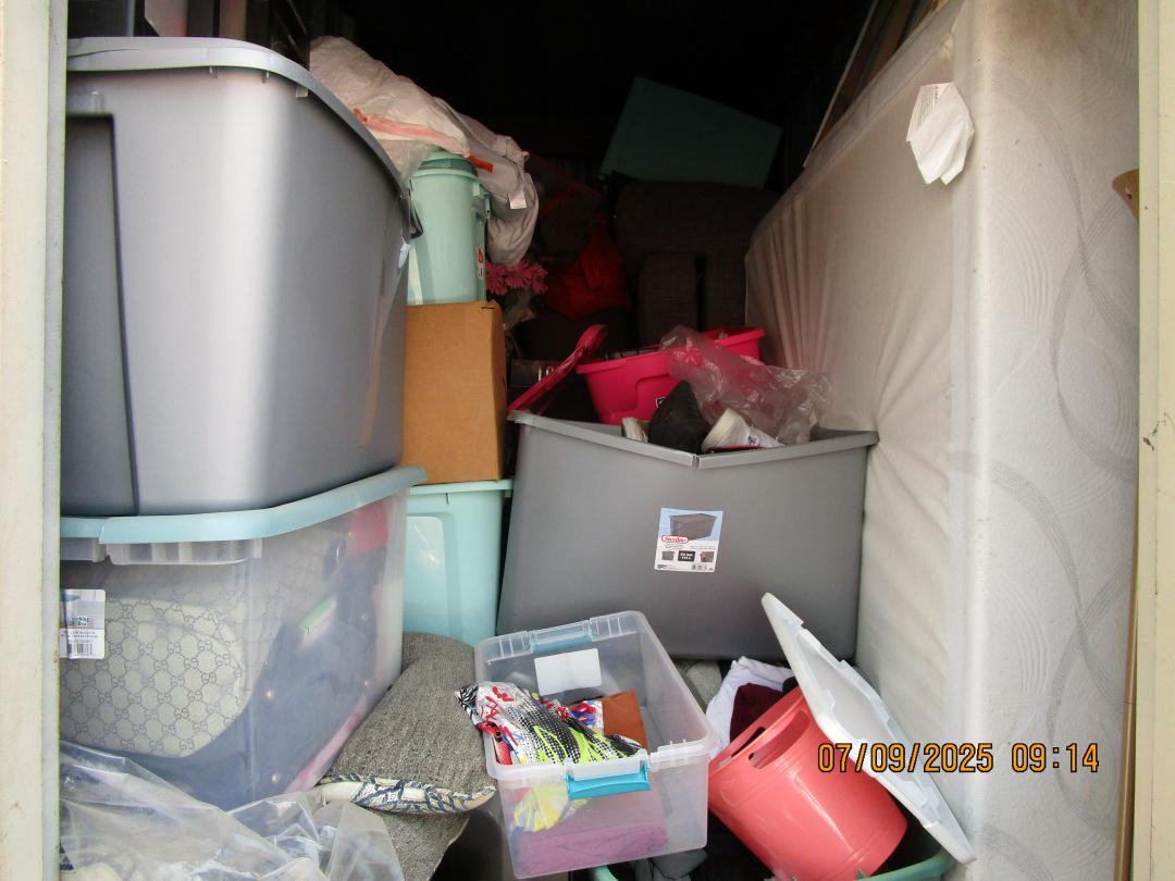 This unit appears to contain…boxes, totes, mattress