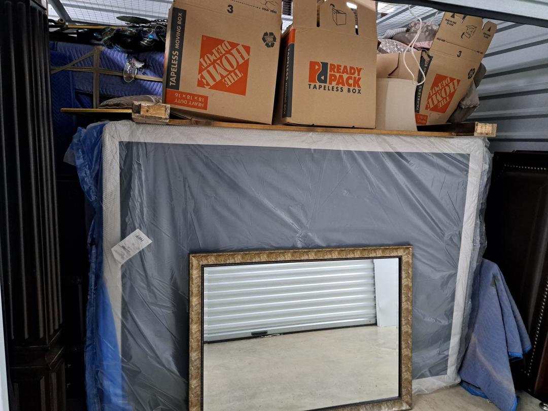 This unit appears to contain…Mattresses, boxes, mirror, decorations, furniture, misc.